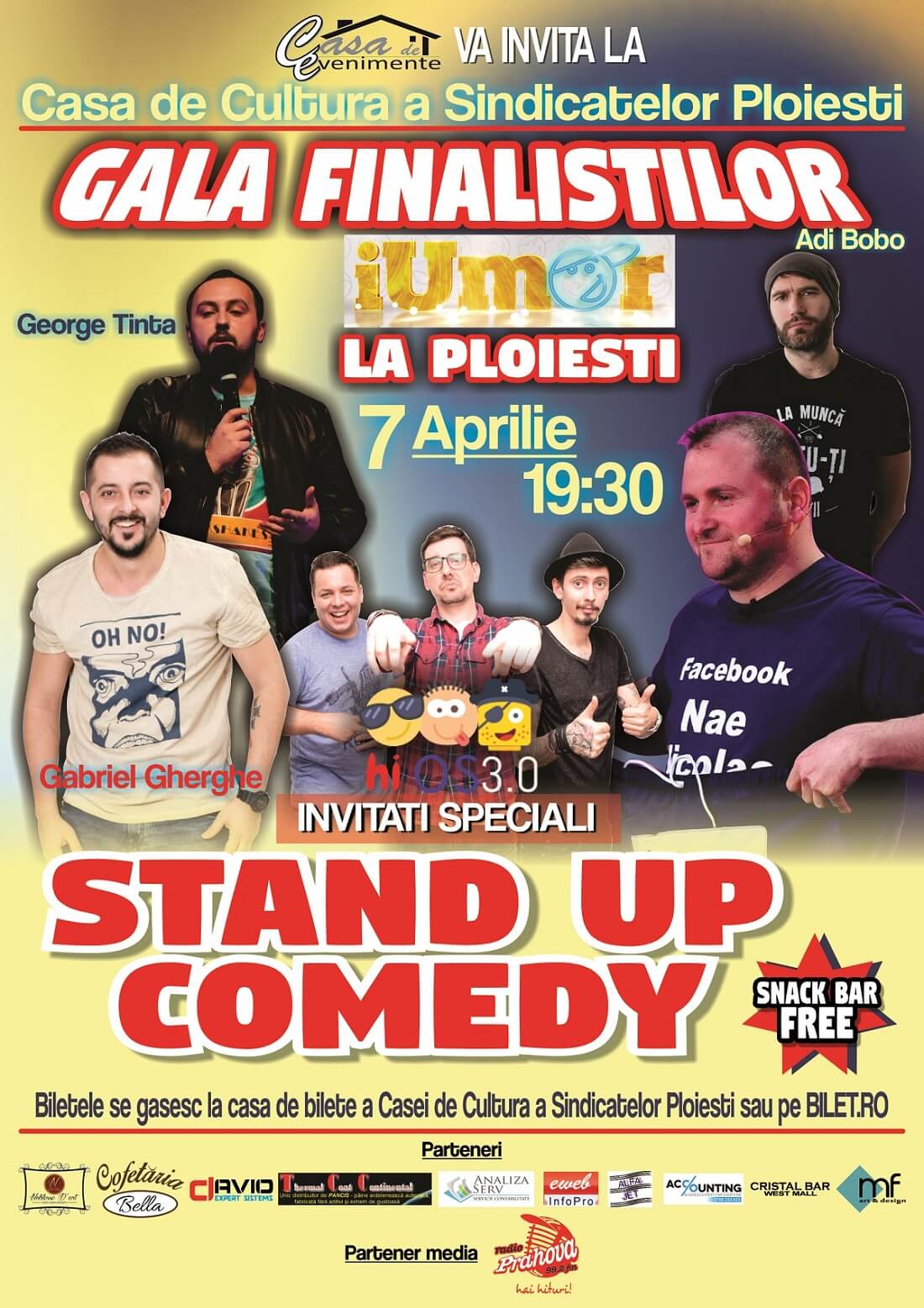 Va avea loc la casa de cultura a sindicatelor Ploiesti – Stand Up Comedy – un spectacol ce va avea loc in data de 1 Aprilie 2017 la ora 19:30.